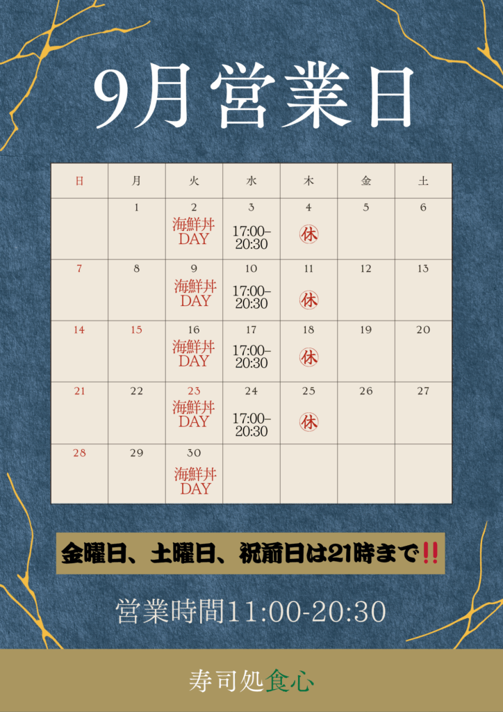 今月から、金曜日、土曜日、祝前日は『21時まで』の営業となります‼️